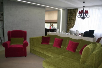Квартира-студия для молодой семейной пары в современном стиле выполнена в монохромной бело-серо-графитовой гамме с добавлением ярких акцентов в виде текстиля и мягкой мебели. Наши декораторы украсили гостиную классическими шторами с геометрическим рисунком, которая прекрасно гармонирует с римской шторой в прилегающей кухне, а также ярким велюровым диваном цвета лайма с«вкусными ягодными» подушками. В кабинете, который в дальнейшем станет детской, стены оклеены«газетными» обоями, а на окнах роскошные шёлковые шторы благородного серого цвета. Классические шторы в спальню трендового бирюзового цвета. Покрывало из бирюзового бархата.