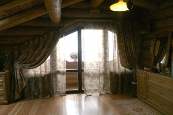 Для оформления деревянного дома на побережье мы выбрали натуральные ткани: лён, рогожку, дикий шёлк, а также, в виду наличия в доме большого количества натуральных шкур и аутентичной мебели, добавили акценты из кожи и бечёвки.